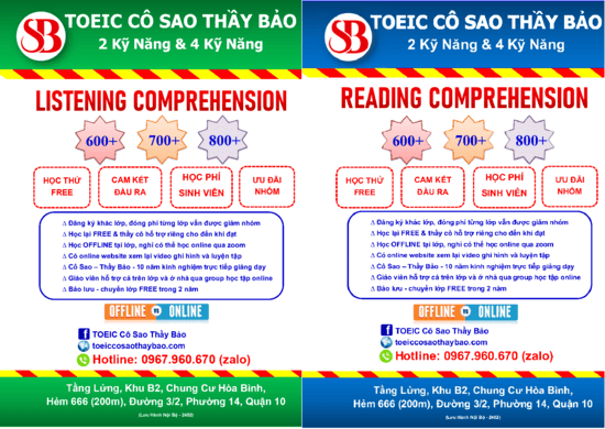 - Lớp này dành cho học viên đã học lớp 1 tại trung tâm hoặc đã nắm rõ các chủ đề ngữ pháp + từ vựng Toeic thông dụng của Lớp 1 + kỹ năng nghe khá tốt.