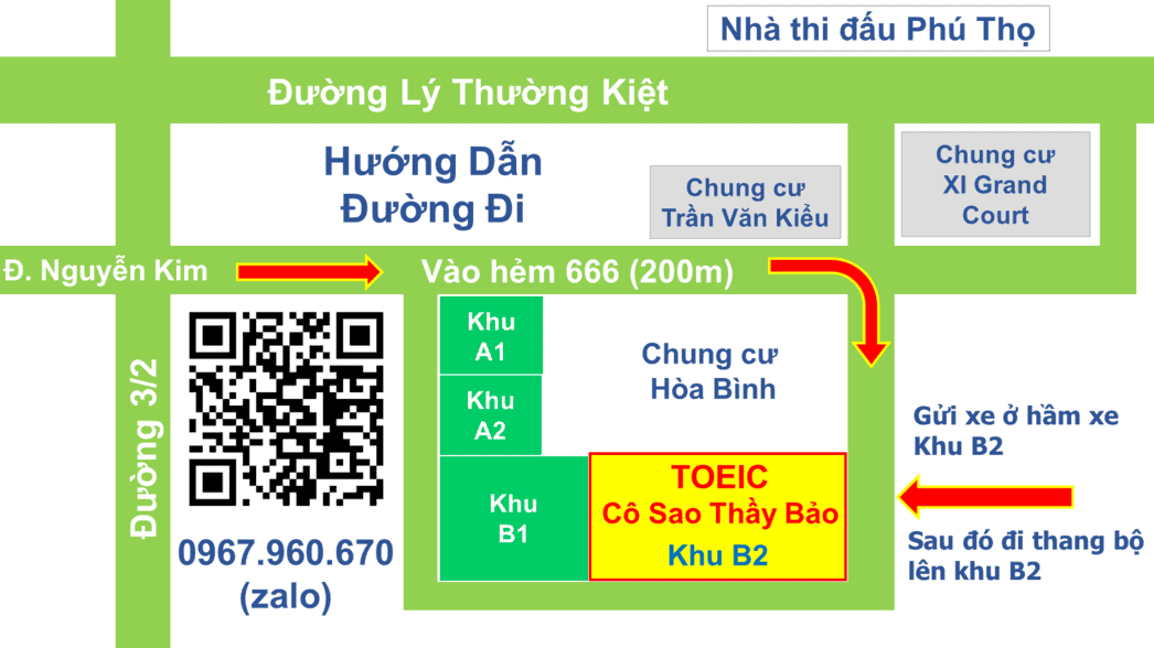 Đóng phí và nhận sách trực tiếp tại trung tâm tại Tầng Lửng Khu B2, hẻm 666 đường 3/2, P14. Q10. (Học viên đến chung cư hỏi đến Khu B2 – Lớp tiếng anh Cô Sao Thầy Bảo)
